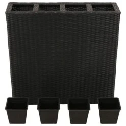 Vidaxl Garden Raised Bed With 4 Pots 80x22x79cm Poly Rattan Brown