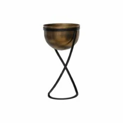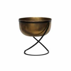 Ivyline Indoor Kensington Brass Metal Round Planter On Stand – H30Cm X W28Cm