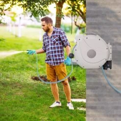 Outsunny Retractable Garden Hose Reel W/ 10m Plus 10m Hose And Simple Manual Rewind