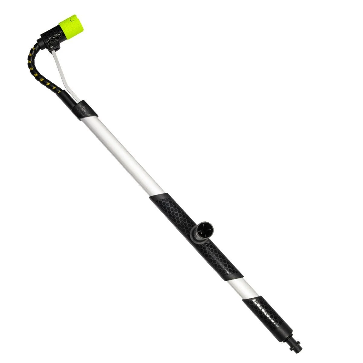The solid grip on the AVA flexilance is easy to use and allows you to move the spreader back and forth without changing position. The handle on the side can be detached from one side of the lance and attached to the other, making it easy to switch from cleaning on top of a vehicle to under. It can also be locked in the working position you want. When the high pressure is on, it carries the weight of the lance for you.