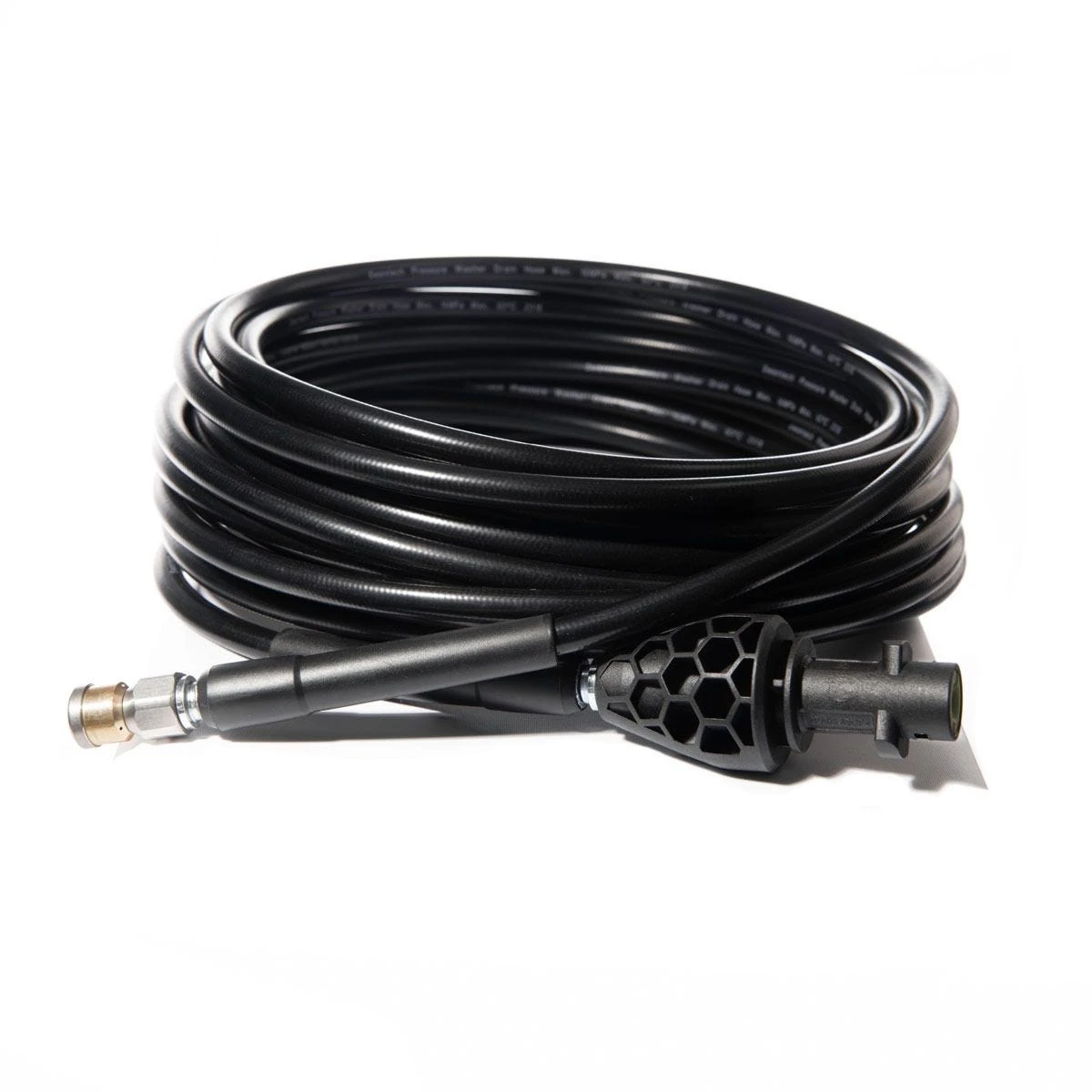 The hose is designed to open clogged pipes and to remove debris from drain pipes. The three-point rotation nozzle has high efficiency and pulls the hose through the pipe and cleans the walls at the same time. The tubing is made of a rigid fiber-reinforced type that enables the user to push the rotating nozzle hole bends through narrow passages in the piping system. The nozzle pulls the hose inwards and cleans 10 times as effectively as normal pipe nozzles.