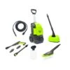 - The three-point high efficiency rotary nozzle actually propels through the pipe and at the same time cleans away debris