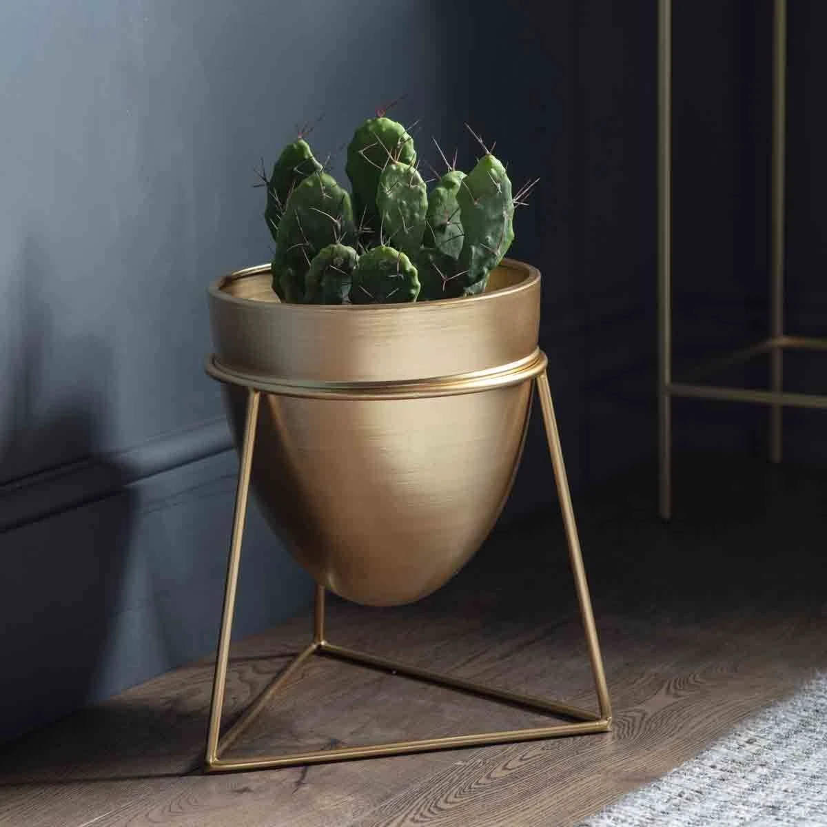The Battersea Metal Planter offers a stunning contemporary design. The pot has a lovely half ovoid shape which is held in an angular metal stand to add contrast and interest. A taller version is available, and both sizes are also offered in a more subtle black finish.