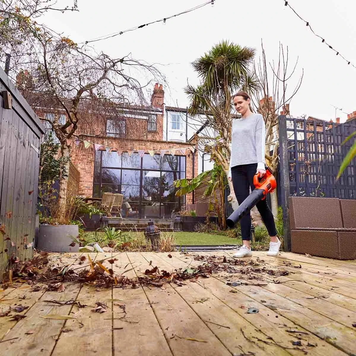 The Black and Decker 18V 2.0Ah Lithium-ion Axial blower is ideal for everyday tasks that involve clearing light debris.
