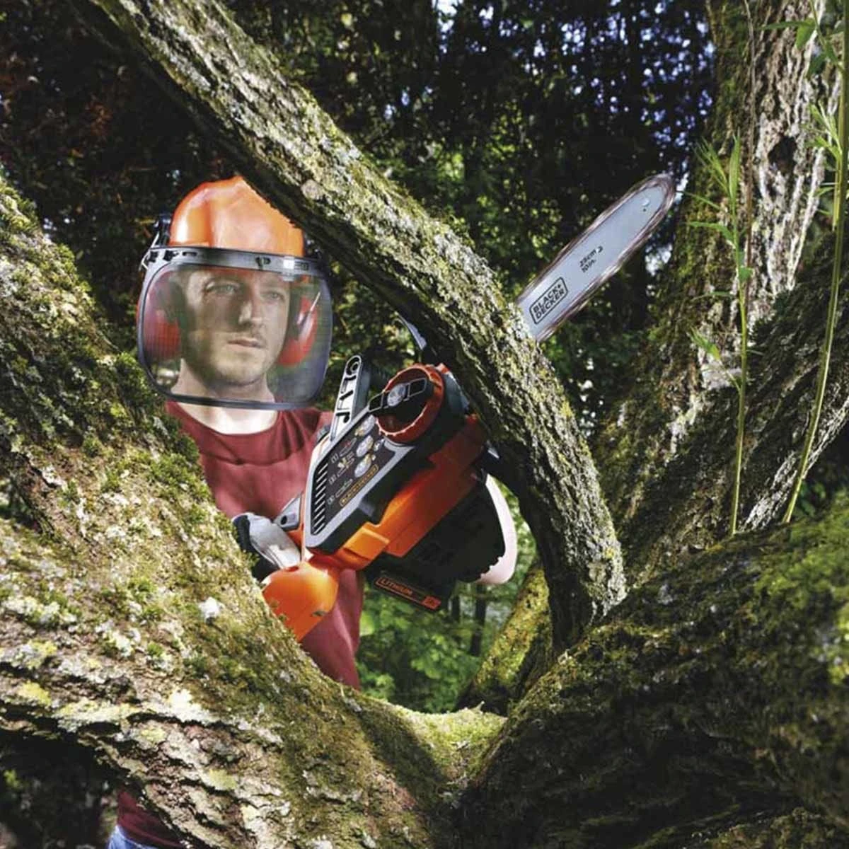 The cordless 18V Lithium-ion chainsaw with 25cm cutting width from Black and Decker is a great addition to your garden power tool collection.