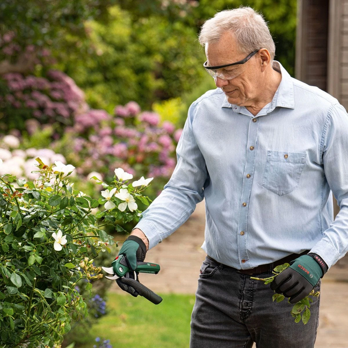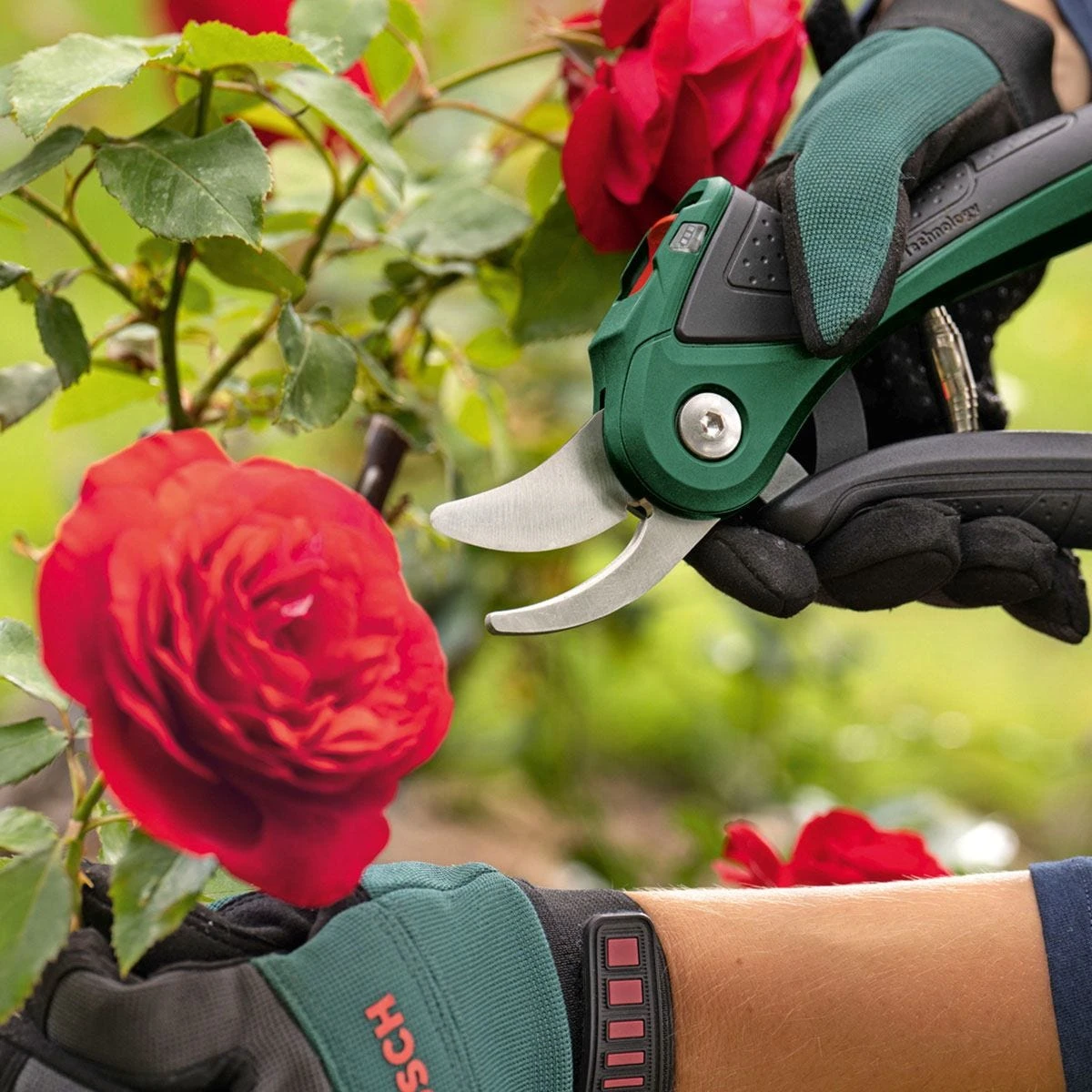 Power Assist Technology effortlessly cuts branches up to 25 mm thick, reducing stress on the hand, unlike manual secateurs. Power assistance kicks into action, as soon as resistance is sensed. A long-lasting 3.6 V battery provides up to 450 cuts on a single charge for flexible, cordless mobility to cut anywhere in the garden. A bypass cutting system, with two premium quality stainless steel blades gliding past one another, encourages healthy plant growth. Enjoy smooth cutting without needing to stop or reposition the secateurs in the process.