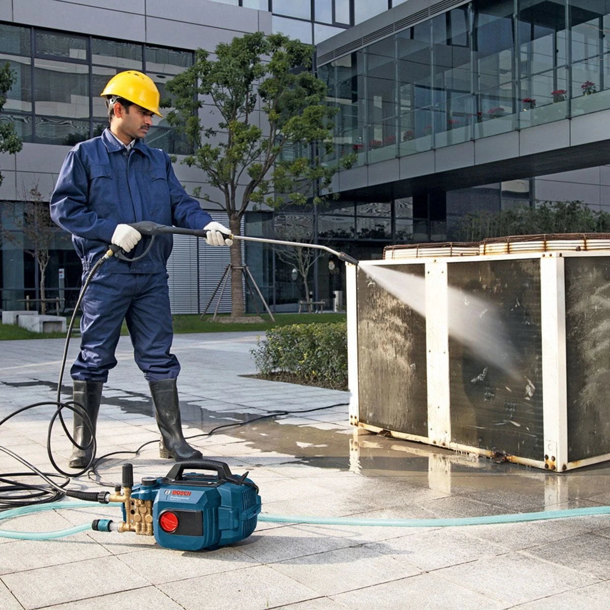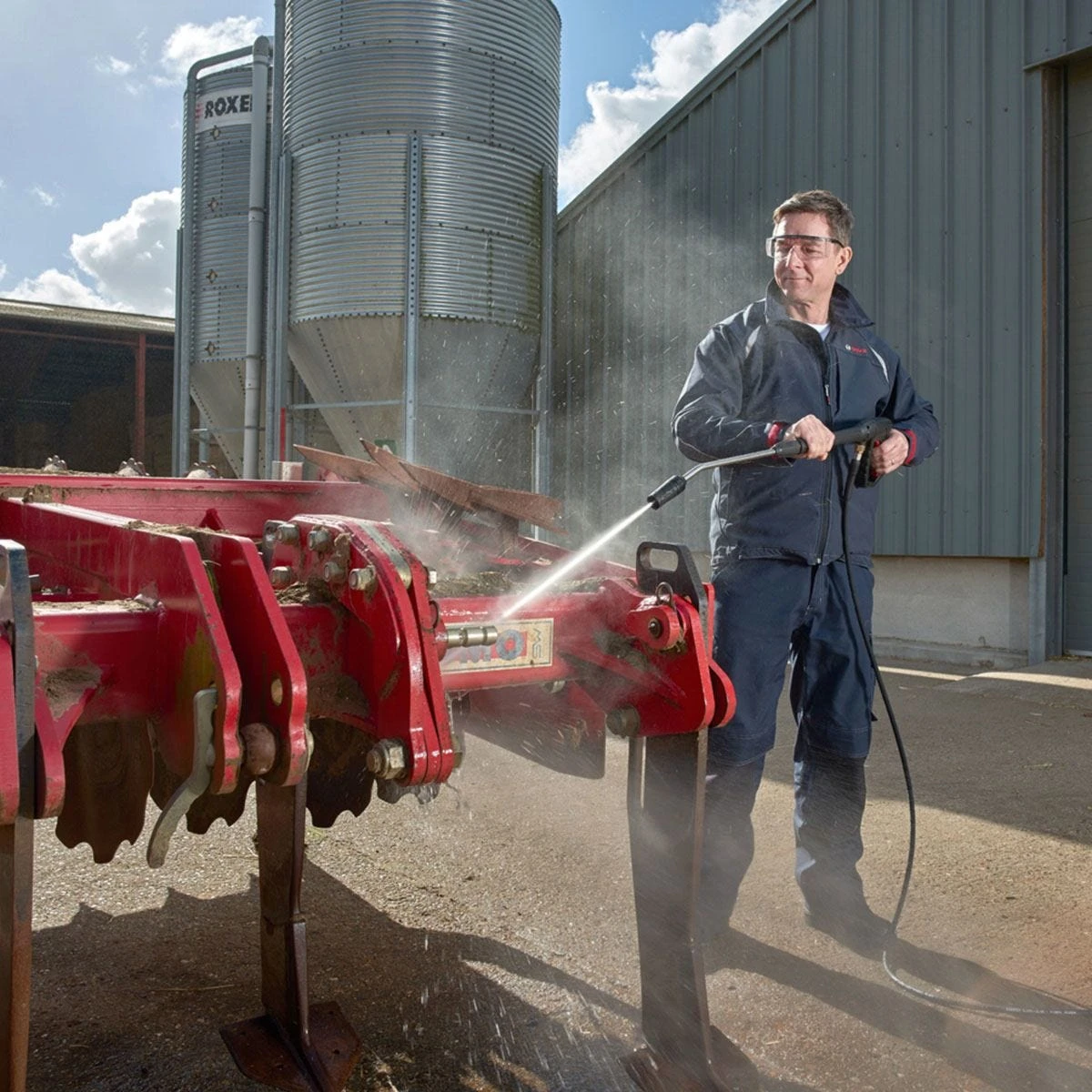 - Comes with gun, 3-in-1 Vario fan jet Lance, 5 m Cable, 8m textile PVC high pressure hose