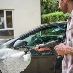 - Trio Nozzle with fan, rotary, and pencil jet settings, for versatile cleaning, Comfortable, more enjoyable cleaning with quieter motor pump, 450-ml High-Pressure Detergent Nozzle saves time by applying soap quickly, Extendable handle and larger wheels offer greater mobility and easier storage, Push-fit connections and in-use gun storage for ultimate convenience