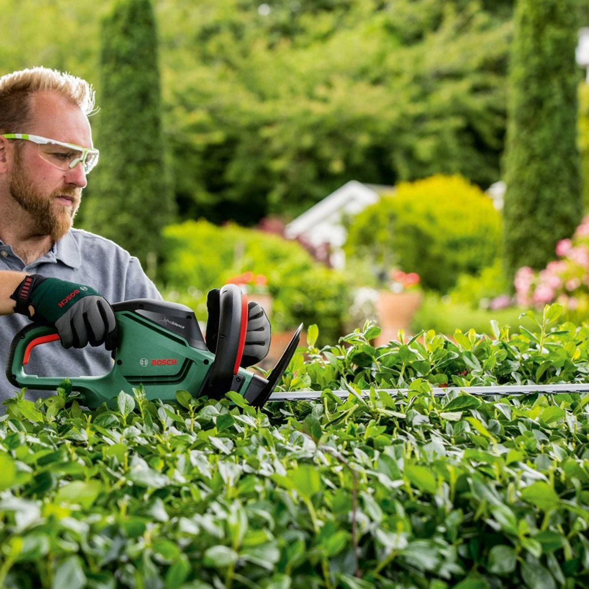 The corded Universal Hedgecut 50 is perfect for trimming medium-sized hedges with quiet ease. Encased in the ProSilence 91 dB sound-dampening shell is an energy-efficient 480 W motor, delivering the optimal power and performance with a reduced energy demand and 80% quieter than our leading hedgecutters. Its 50-cm long, laser-cut, diamond-ground blades with a 26-mm tooth opening cut effortlessly through branches up to 26 mm wide for fast and impressive results. This hedgecutter is perfect for trimming conifer, privet/box, hawthorn, and viburnum hedges.