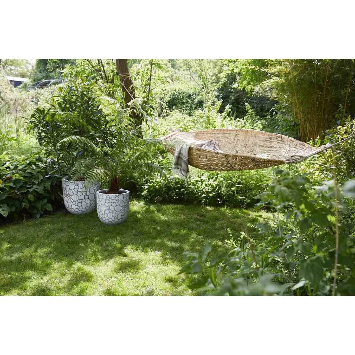 This sustainable planter out of the Clay collection is made with recycled materials and is suitable for indoor and outdoor use. The orange inside of the planter is intended to represent their place of origin and it also provides the planters with insulation, offering your plants extra protection against both heat in summer and cold in winter. This extra layer provides extra firmness to the planter, which makes it fracture-resistant. In addition, the flower pot has a lifetime guarantee.The Clay-texture gives these planters a tough, natural look. This texture is inspired by cracked clay soil. It shows the process of nature where solid clay dries out and cracks. One of natureÂ’s many forms. The planter is perfect for indoor use, because the planters are 100% watertight. For outdoor use you only have to drill a drainage hole with a minimum of 25 mm.