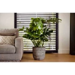 This sustainable planter out of the Rib collection is made with recycled materials and is suitable for indoor and outdoor use. The orange inside of the planter is intended to represent their place of origin and it also provides the planters with insulation, offering your plants extra protection against both heat in summer and cold in winter. This extra layer provides extra firmness to the planter, which makes it fracture-resistant. In addition, the flower pot has a lifetime guarantee.The Rib-texture gives the planter a natural look. The Ribs texture is inspired by wickerwork with its elegant lines. Besides the natural look, the small, dancing lines provide a playful touch to these Capi pots. The Nature Rib NL is available in the colours black, ivory, anthracite and dark brown. The different colours give each flower pot its own character. The planter is perfect for indoor use, because the planters are 100% watertight. For outdoor use you only have to drill a drainage hole with a minimum of 25 mm.