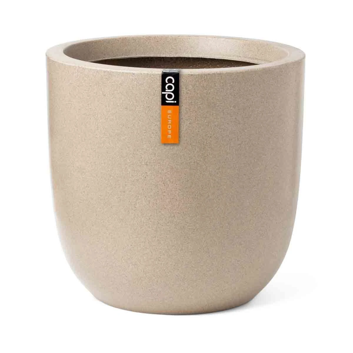 This sustainable planter out of the Waste Rib NL collection is produced CO2 neutral in the Netherlands and made from 100% waste; fishing nets, used corks and recycled Capi planters. This collection takes action and responsibility by taking on one of the biggest waste problems today; fishing nets. These fishing nets are combined with old corks and recycled Capi planters to turn them into high quality products with a functional design. This sustainable planter is suitable for indoor and outdoor use and has a lifetime warranty.The Rib-texture gives the planter a natural look. The RibÂ’s texture is inspired by wickerwork with its elegant lines. Besides the natural look, the small, dancing lines provide a playful touch to these Capi pots.Let us take care of our oceans, ourselves and our next generations. The planter is perfect for indoor use, because the planters are 100% watertight. For outdoor use you only have to drill a drainage hole with a minimum of 25 mm.