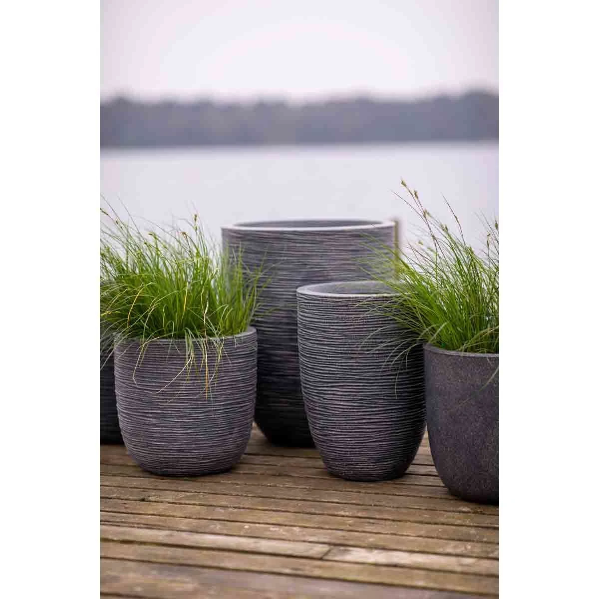 This sustainable planter out of the Waste Rib NL collection is produced CO2 neutral in the Netherlands and made from 100% waste; fishing nets, used corks and recycled Capi planters. This collection takes action and responsibility by taking on one of the biggest waste problems today; fishing nets. These fishing nets are combined with old corks and recycled Capi planters to turn them into high quality products with a functional design. This sustainable planter is suitable for indoor and outdoor use and has a lifetime warranty.The Rib-texture gives the planter a natural look. The RibÂ’s texture is inspired by wickerwork with its elegant lines. Besides the natural look, the small, dancing lines provide a playful touch to these Capi pots.Let us take care of our oceans, ourselves and our next generations. The planter is perfect for indoor use, because the planters are 100% watertight. For outdoor use you only have to drill a drainage hole with a minimum of 25 mm.