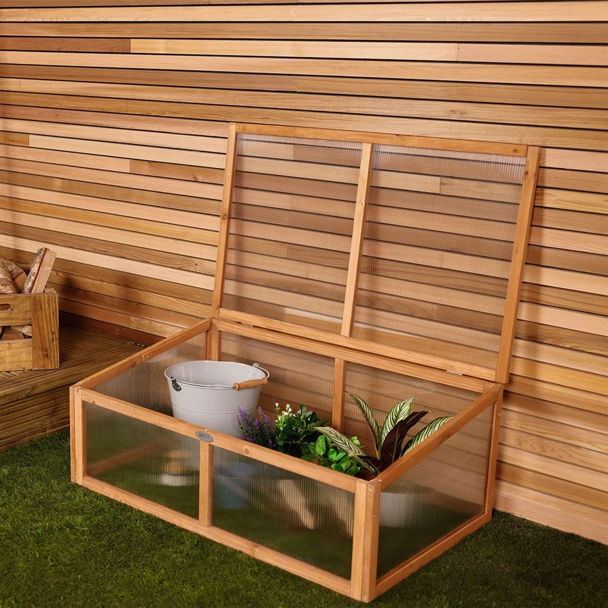 Not only does it provide great growing conditions, it also offers protection to the elements and animals. Manufactured with FSC wood it complies with the highest social and environmental standards. The hinged lid and locking stay help to make tending to your plants easy and it’s double layered polycarbonate panelling help to protect young growing plants.