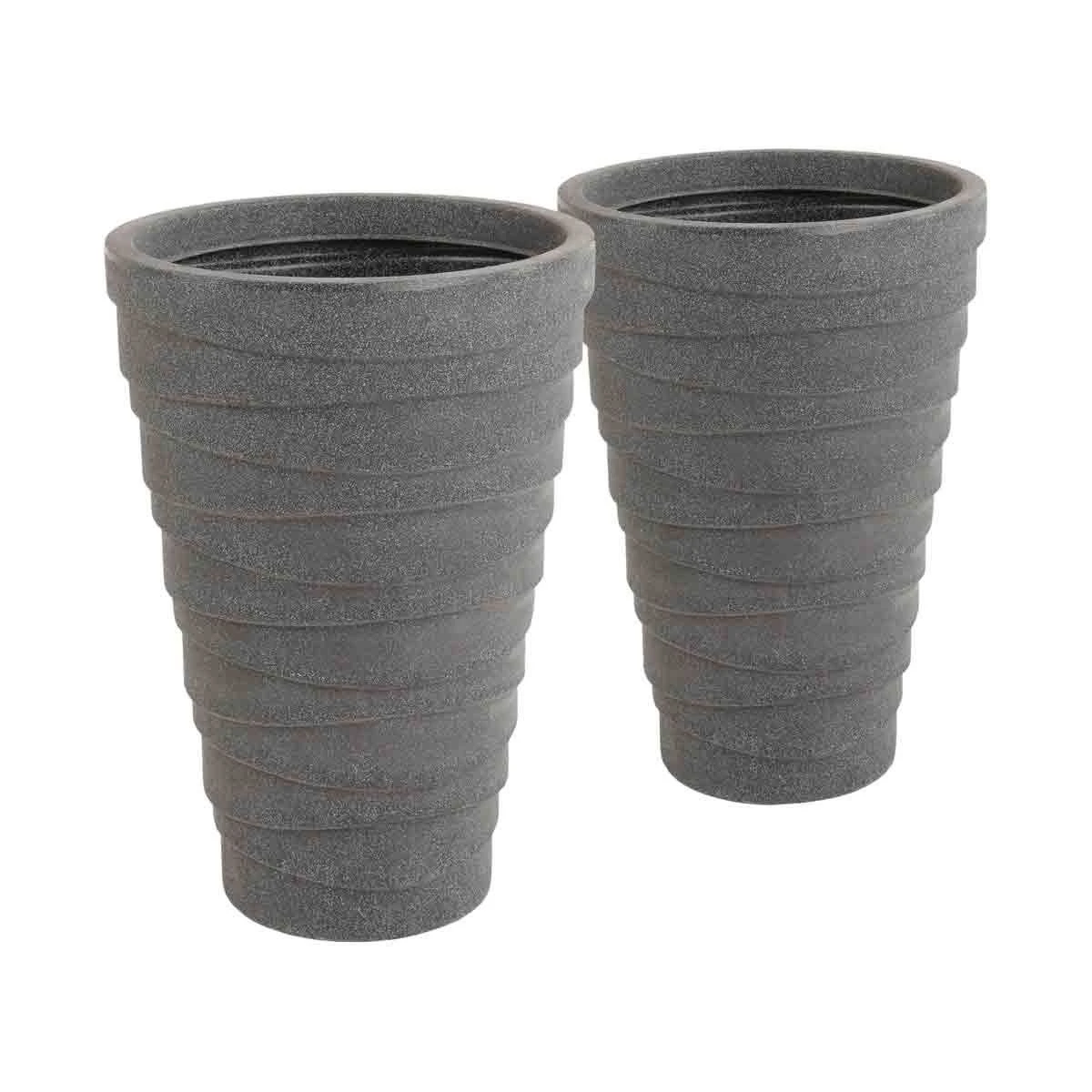 Made of lightweight plastic, this pair of planters can easily be manoeuvred into the perfect position. Finished with a neutral grey charcoal effect, these planters are a great choice for a variety of plants and flowers.
