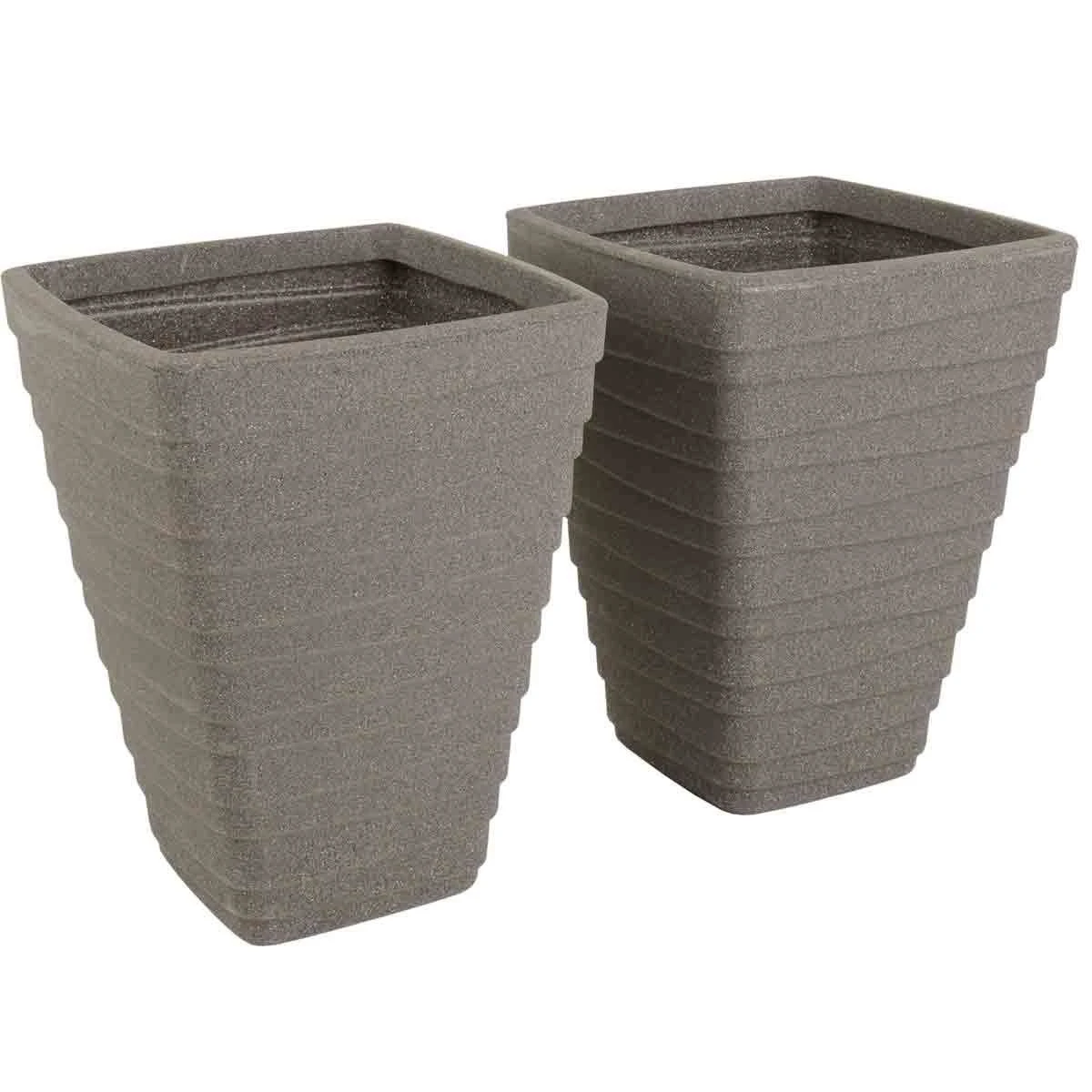 Made of lightweight plastic, this pair of planters can easily be manoeuvred into the perfect position. Finished with a neutral grey granite effect, these planters are a great choice for a variety of plants and flowers.