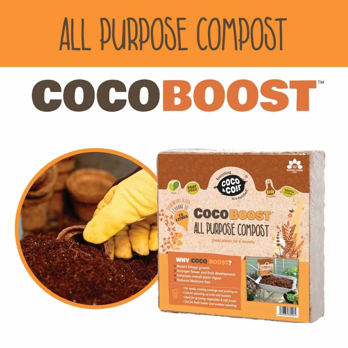 - Coco Boost is perfect for pots and containers of all sizes, including hanging baskets and window boxes