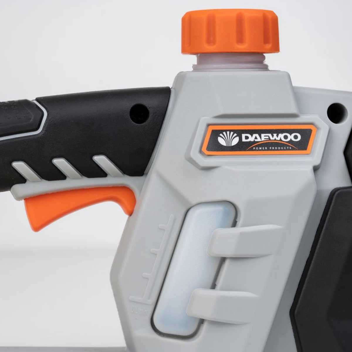 Please make sure it is used with the 170ml oil tank filled with special chain oil, available at petrol stations. The device is working with either 2,000mAh or 4,000mAh (recommended) batteries. These are available to purchase separately. The batteries are interchangeable with other DAEWOO U-Force devices. One battery for all.