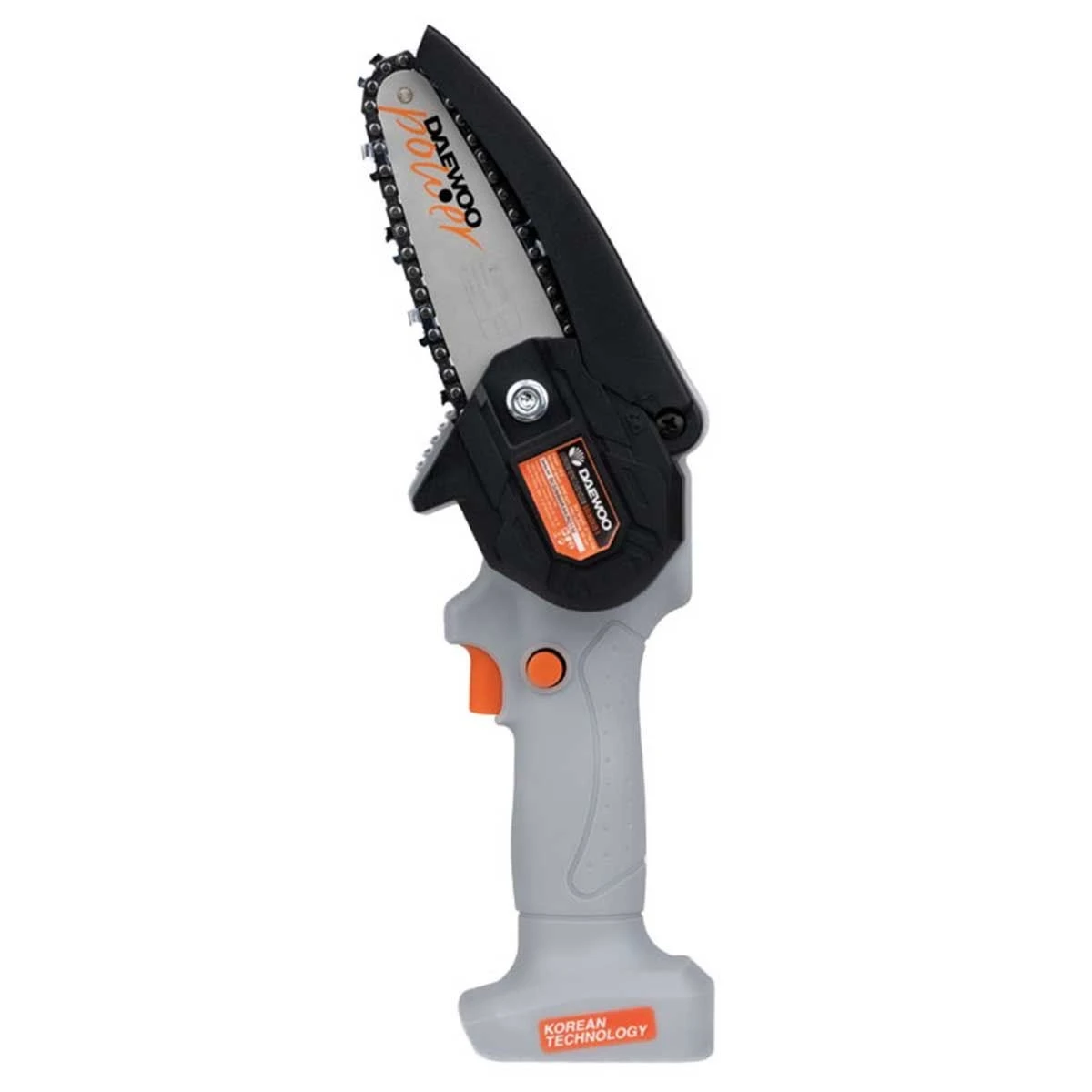 As a result of DAEWOO Korean technology and engineering, this handful tool has a powerful 18V motor, which provides 3,000 rpm, translated to 5 m/s speed on the chain bar. The device weighs only 780g, without a battery.