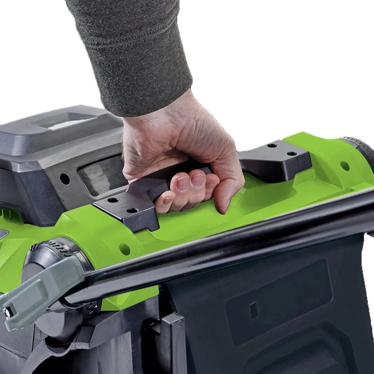Built to be reliable and durable, this powerful 1600W electric motor is easy to operate using the safety-switch power lever. The 400mm cutting width is ideal for medium-sized lawns and there are six cutting heights to choose from using the single-lever height adjuster. The 45-litre grass collection box is collapsible for easy storage.