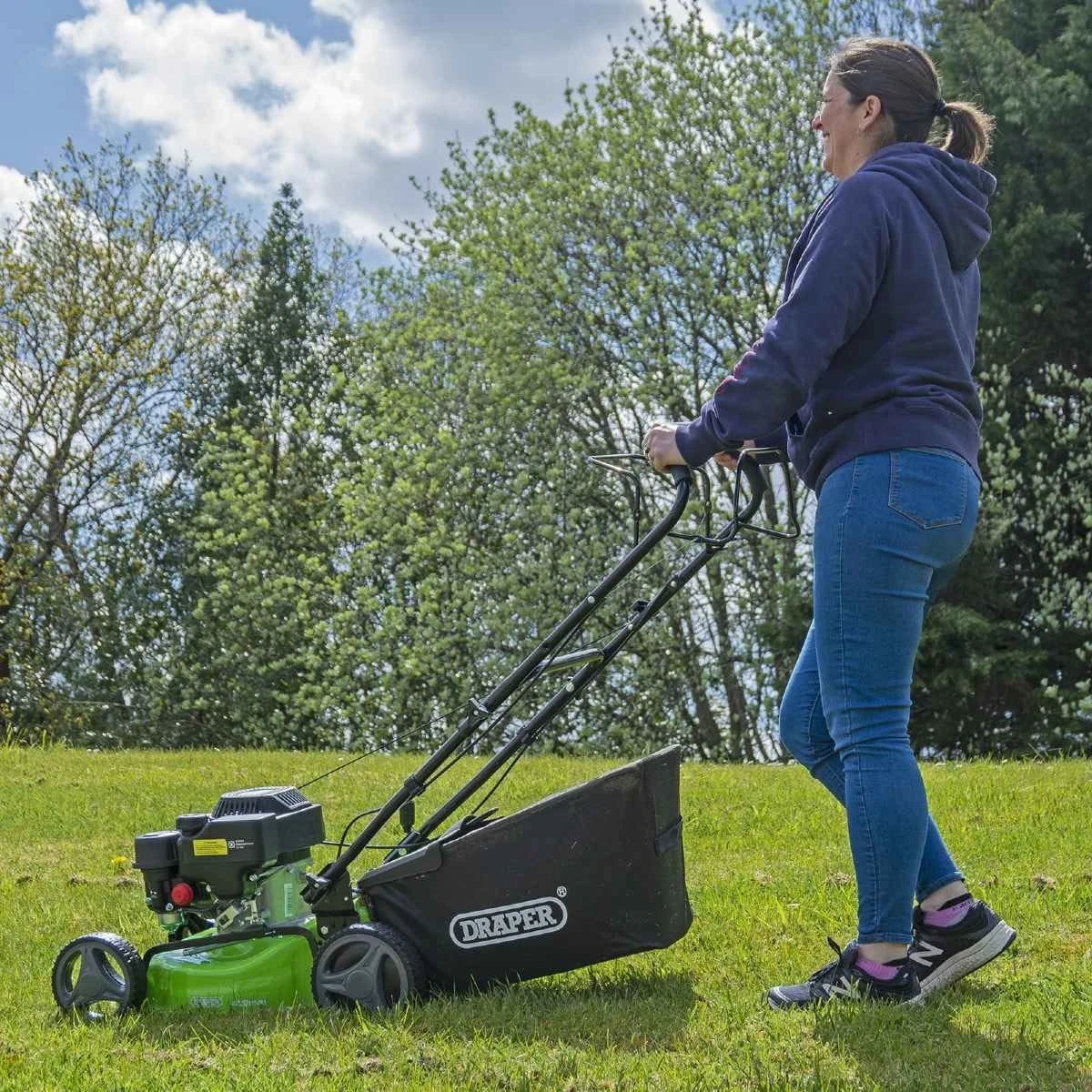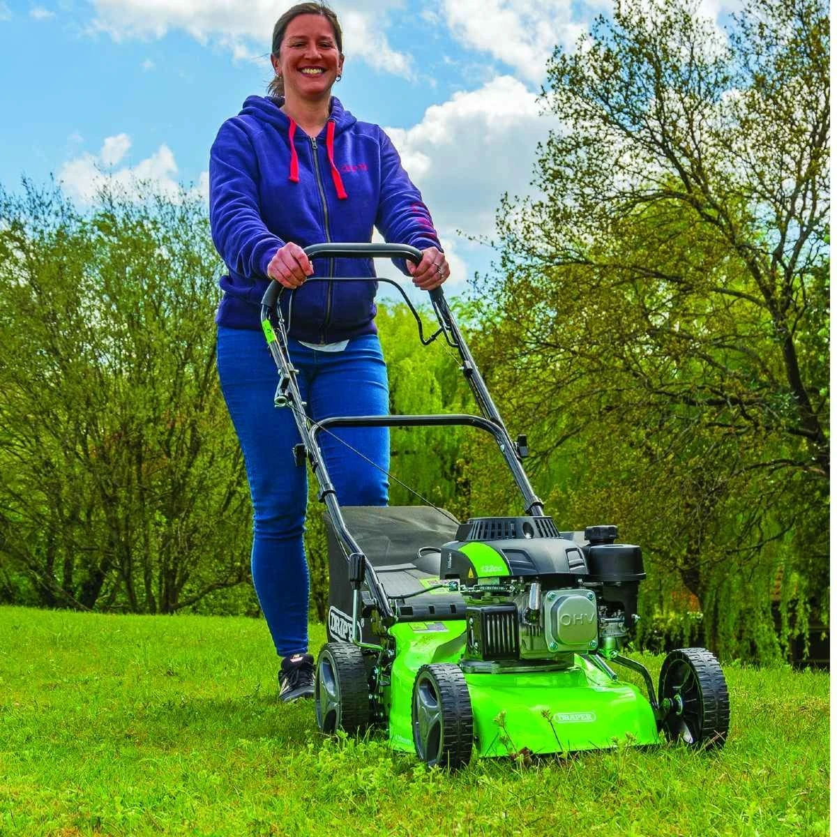 The Draper 420mm steel deck petrol lawn mower is the perfect addition to your garden. It has a powerful 132cc euro 5 engine and runs on petrol.
