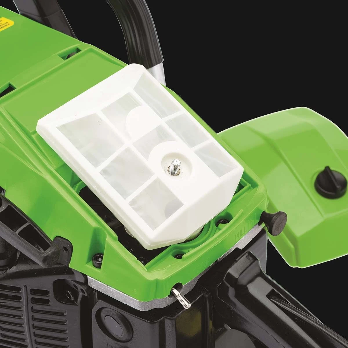 With a cutting bar length of 45cm and a max engine speed of 11,000 rpm, this chainsaw has the power and torque needed to take care of most domestic wood cutting. It also features a washable air filter for optimal performance while the recoil start system makes it easy to get the machine going ready to tackle the job at hand.