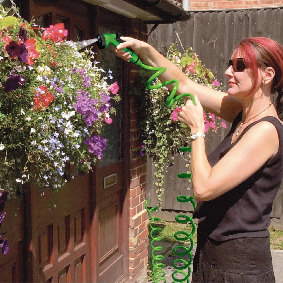 The Draper Hose kit comprising of 3/8″ diameter recoil hose with a 10m to 30m working length, 1/2″ tap connector and five pattern spray gun.
