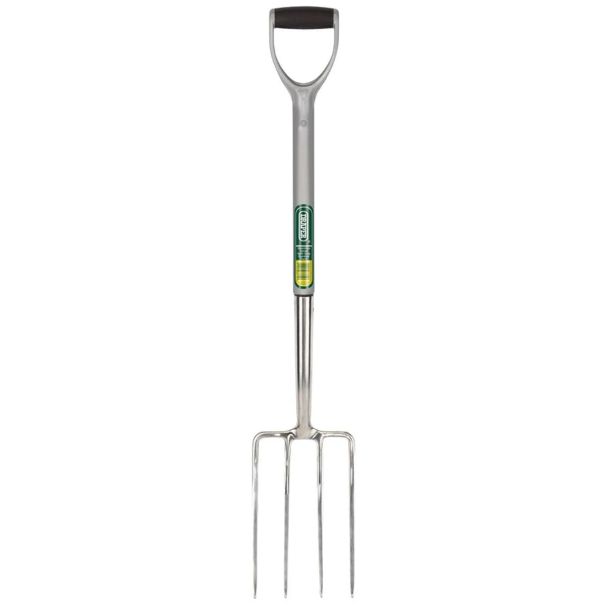 This stunning Draper Stainless Steel Garden Fork is made with Y-dee handle with soft handgrip attached to a plastic coated, steel core shaft.