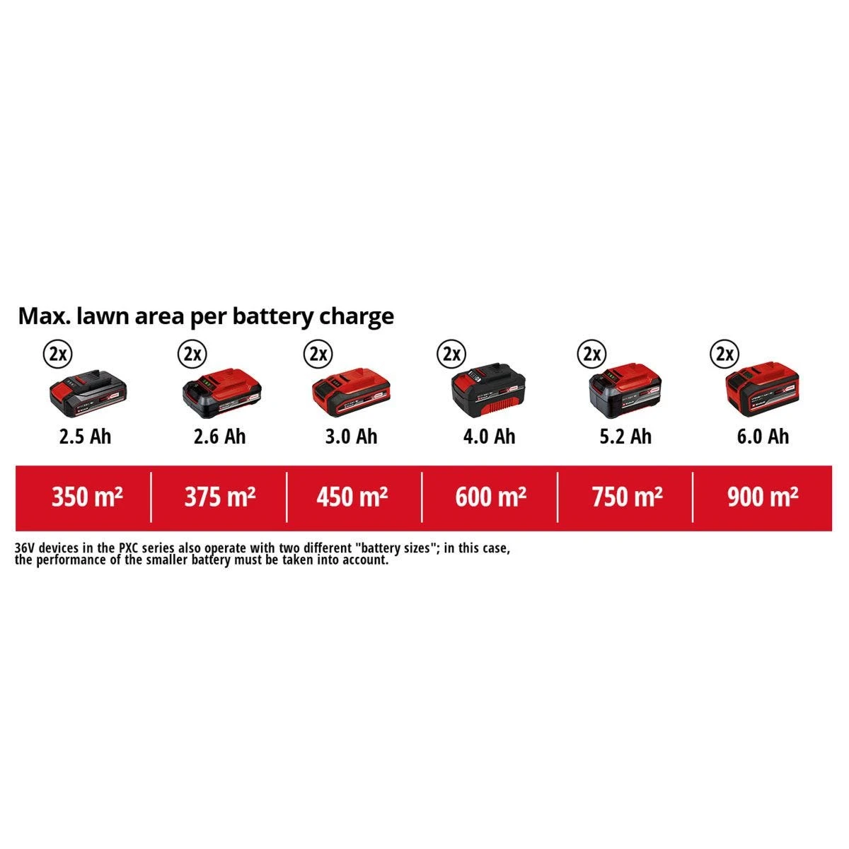 The GE-CM 43 Li M cordless lawn mower is a high-quality, reliable and extremely powerful tool which cares for larger lawns without being connected to a socket. With the new Power X-Change battery system from Einhell the lawn mower has two powerful 18 V battery packs with 4.0 Ah for long work sessions without any bothersome power cables. For simple, individual adjustment of the cutting height there is a central 6-level cutting height adjustment facility. In addition the cuttings can be finely shredded by a mulching kit before they are evenly distributed over the lawn.