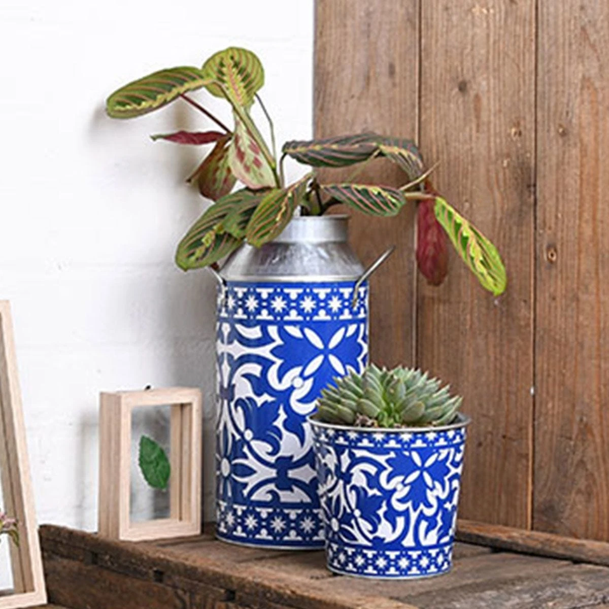 This milk churn is provided with a blue and white design that recreates the Portuguese tiles decoration.