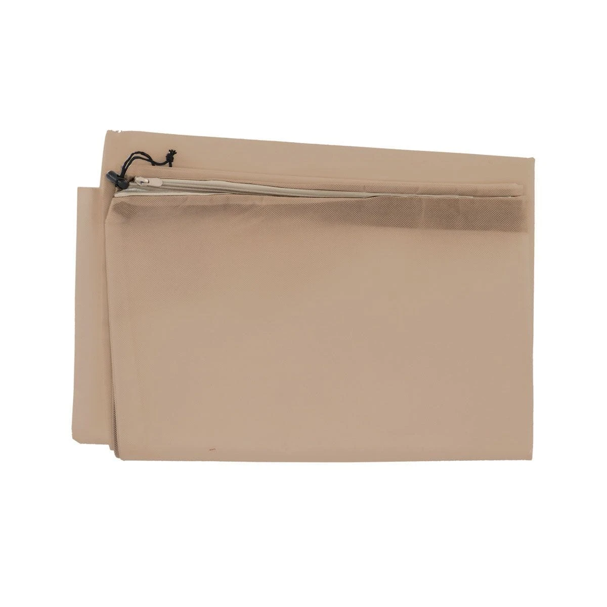 - Provided with a zipper and drawstring