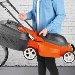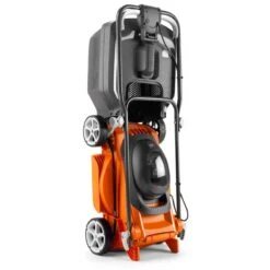 Equipped with central height adjust, a large easy to empty grassbox and dual lever handles.