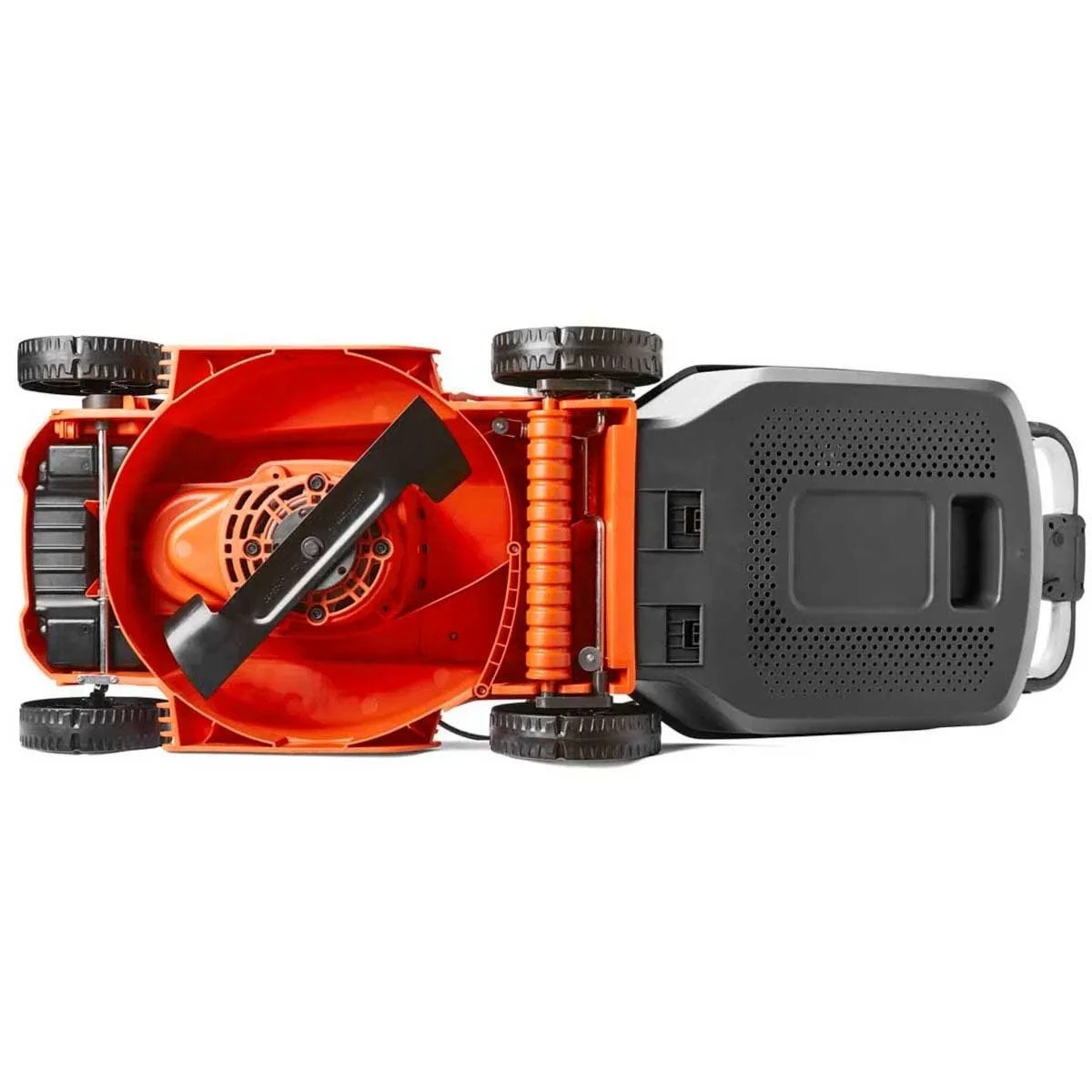 A convenient handle on top of the mower makes it easy to carry to and from the lawn. Plus, the handles easily fold down so the mower can be stored away neatly.