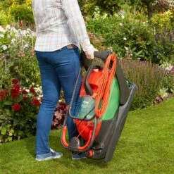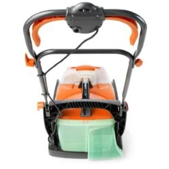 This mower is also equipped with a unique central height adjustment dial, dual lever handles, handy cable storage and easy fold handles for an easy to use and convenient garden maintenance machine.