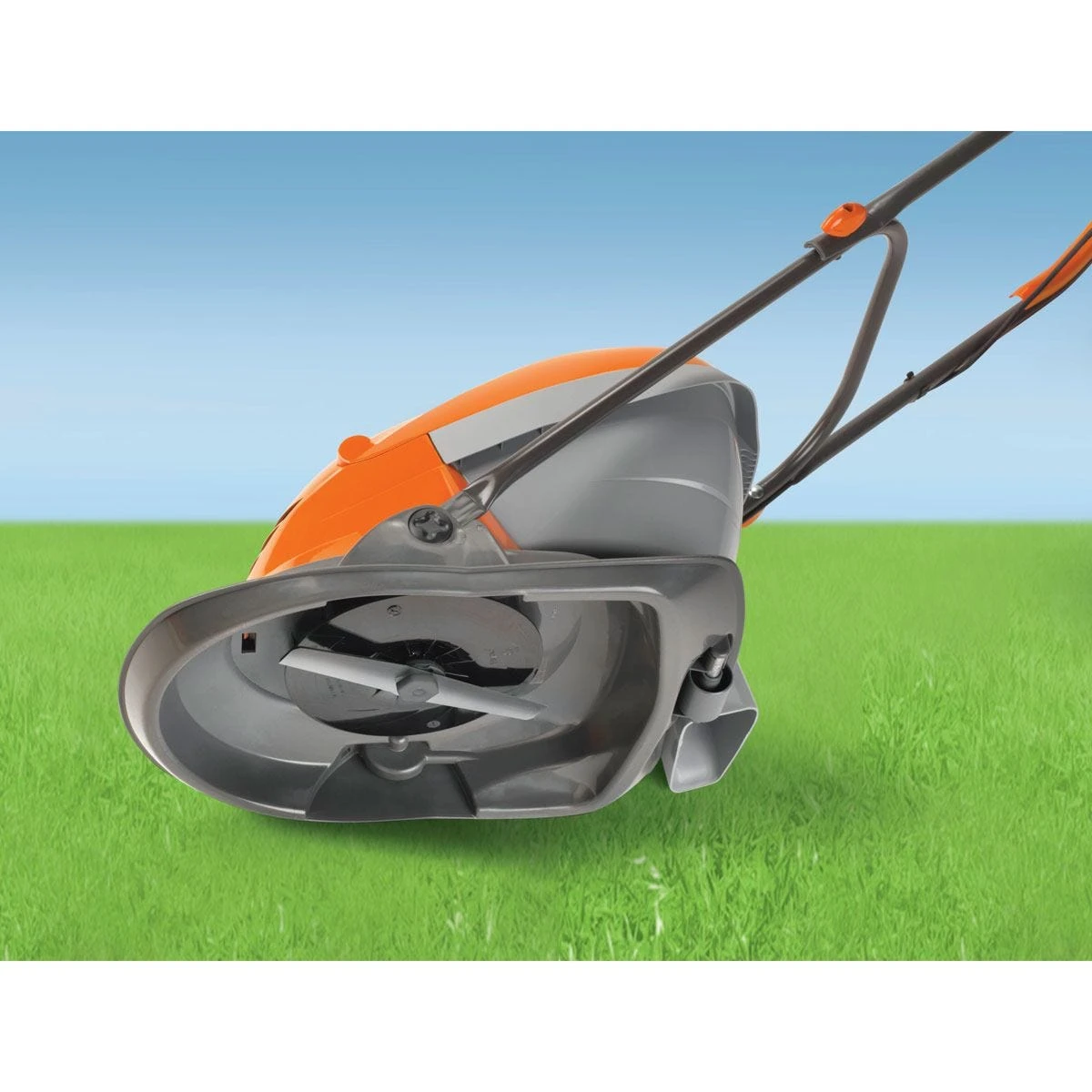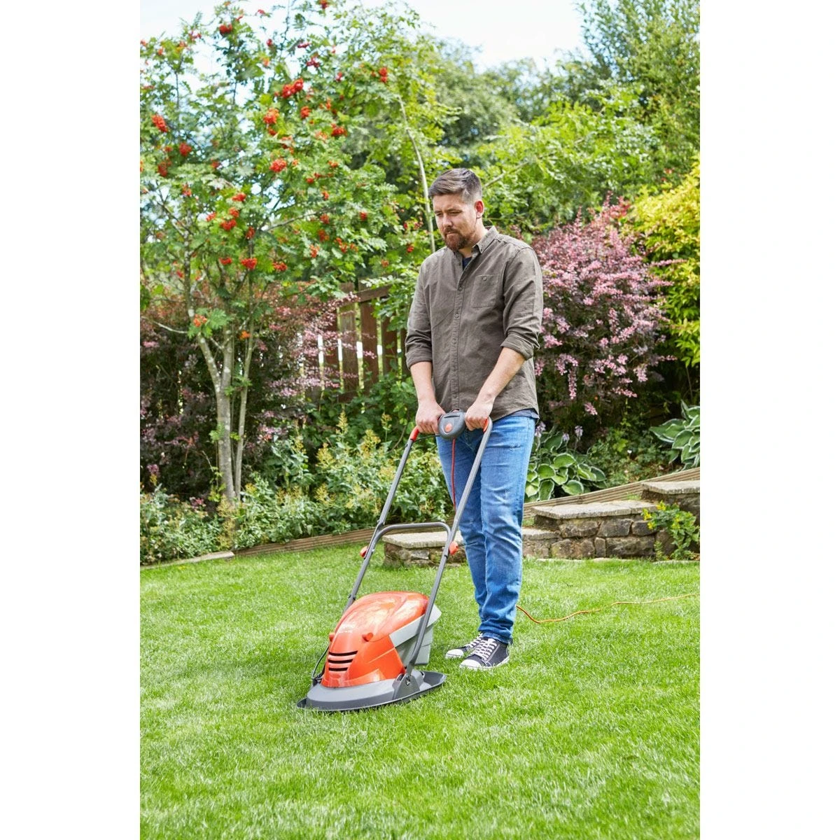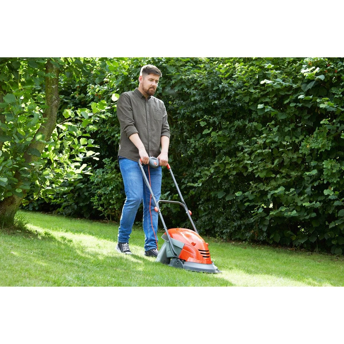 Designed for smaller gardens, the Flymo Hover Vac 260 is a 26cm electric hover mower with a powerful 1400W motor which floats on a cushion of air whilst cutting the grass.