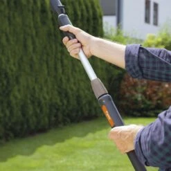 - Long-reach – With a length of 2.1m, this trimmer is great for reaching those taller hedges and bushes without the need for a ladder.