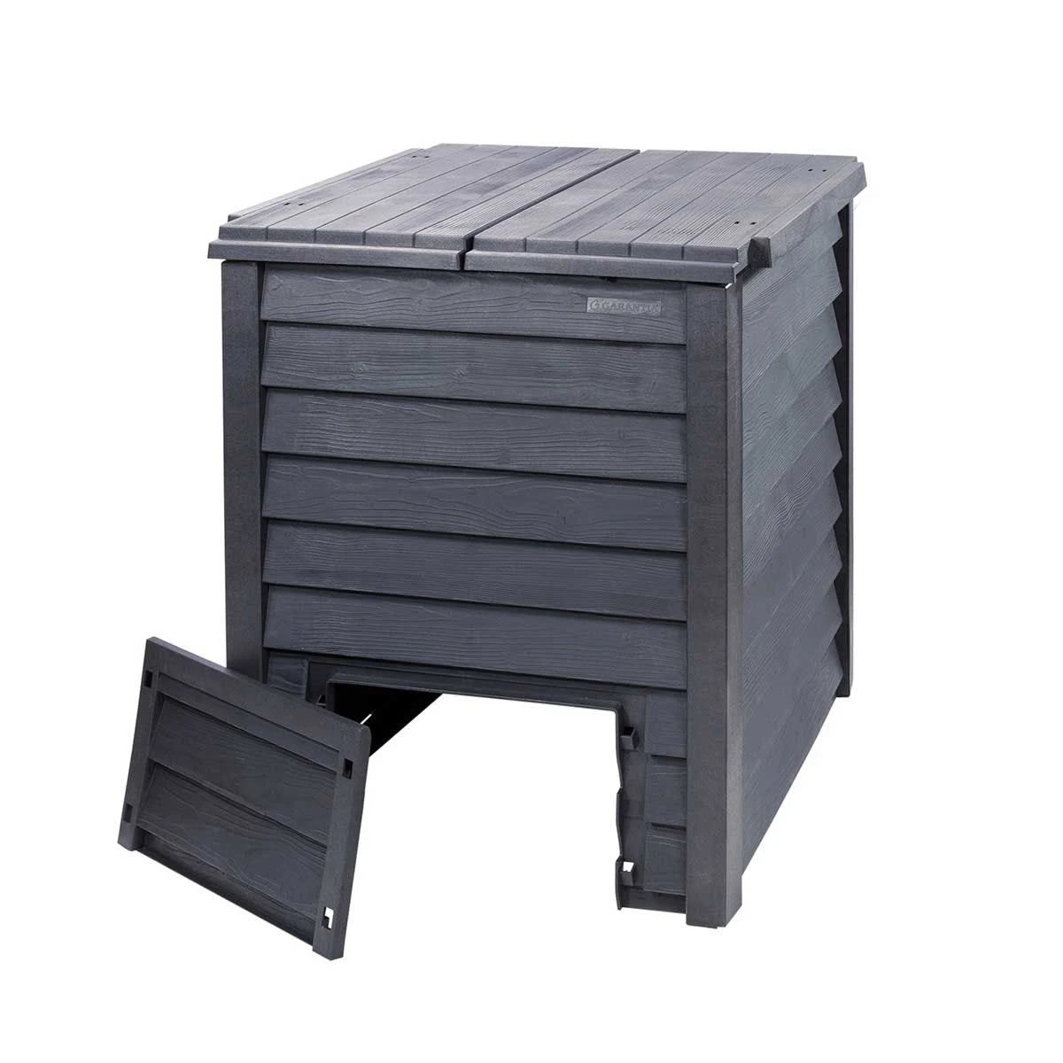 Thanks to the innovative, Thermolene plastic structure, this composter has premium insulative properties meaning for rapid and convenient composting. It also features two large hatches for easy access to complete compost, and quick filling through the lid. Finished with stylish wood effect boards in a contemporary shade of grey, this compost bin will look great as well as being functional, making it an all round winner.