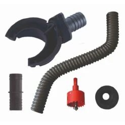 This nifty innovative device allows the downpipe to be cut with a holesaw (provided) and the connector is simply inserted into the hole and tightened up.