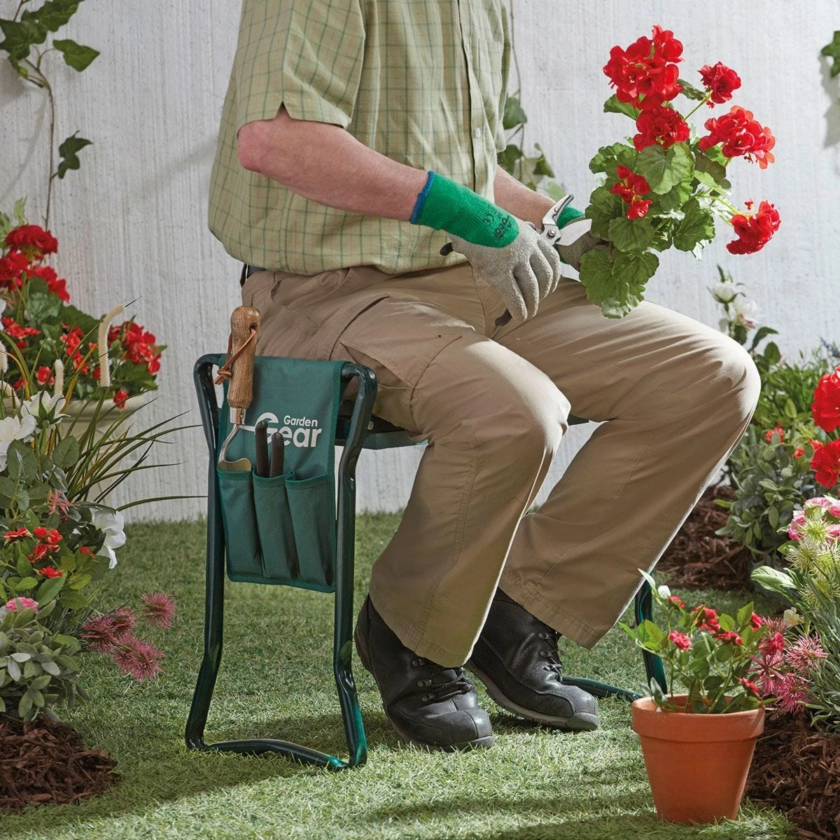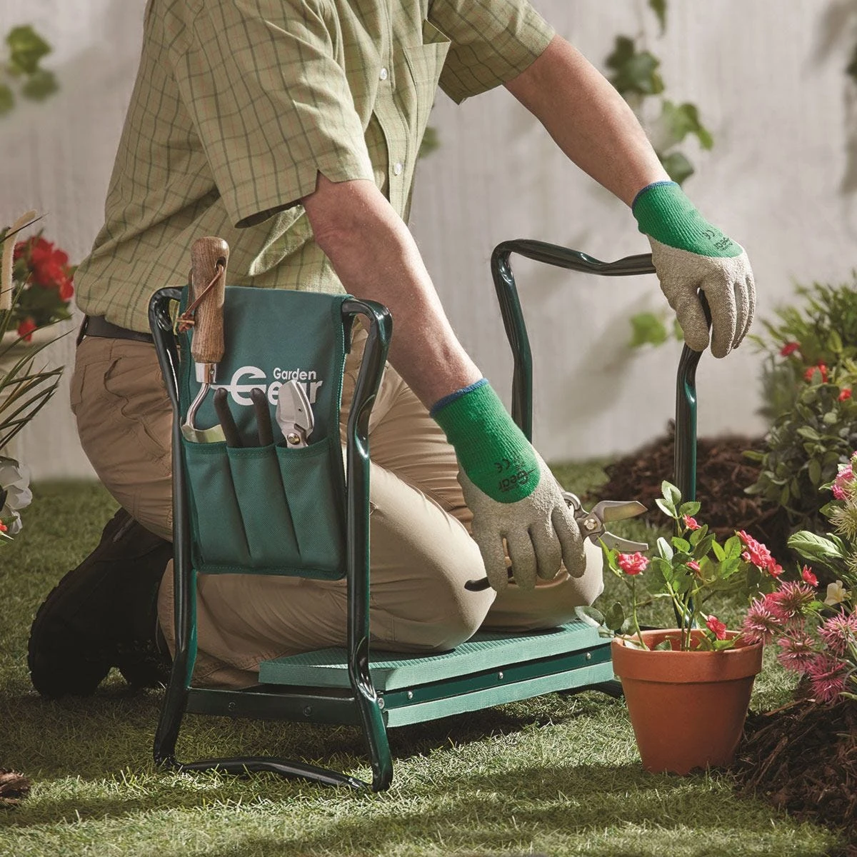 - Added feature; The kneeler comes with an added tool pouch that can be fitted in both sitting and kneeling positions. it has three pockets great for storing garden tools