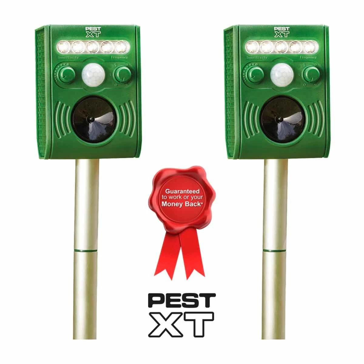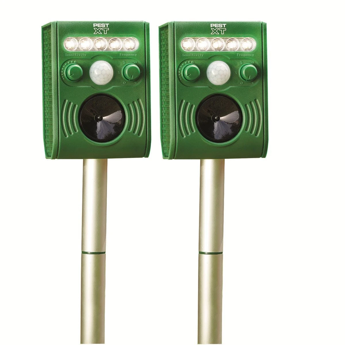 The Pest XT ultrasonic flash pest repeller is designed to safely and effectively deter animals from doing any damage to your garden by automatically releasing an ultrasonic sound and a burst of bright LED light. The sensor unit detects movement and once triggered it will release a burst of bright LED light, that works in unison with the ultrasonic noise to repel any garden pests. These pests include, but are not limited to, deer, rabbits, squirrels, rats, cats, dogs and insects.
