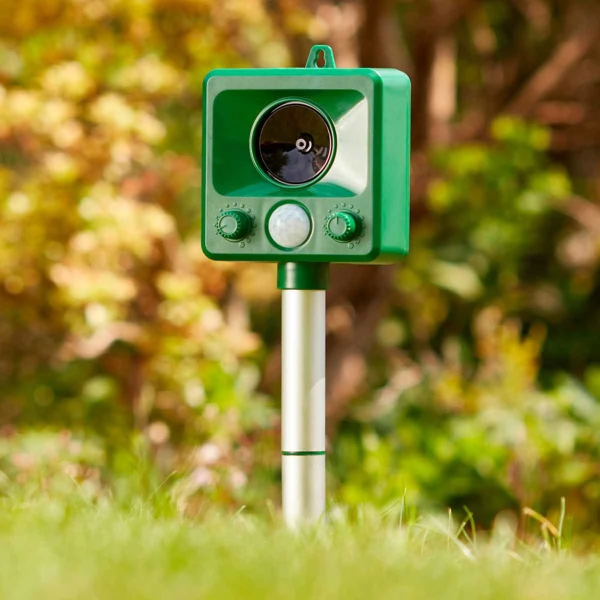- Covering a large area, the repeller operates using a PIR motion sensor with a 110 degree detection arc and will sense animals up to 26 feet away, giving you a total unobstructed working area of 286 sq ft (70 sq m). Simply position it in the ground using the stake provided, or fix it to a wall or fence to cover the maximum area