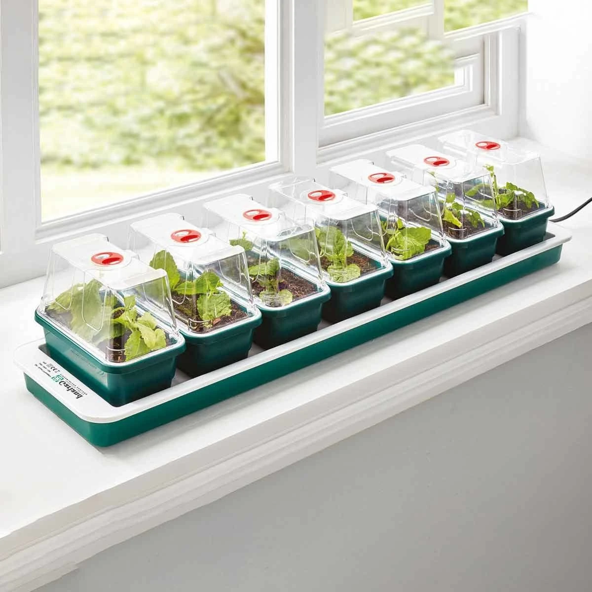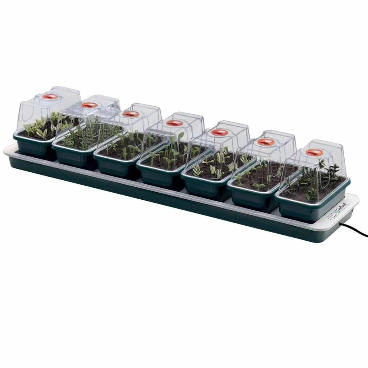 Ideal for the amateur gardener to provide the constant gentle heat required to successfully rear seedlings on a windowsill indoors, the Super 7 propagator comes with seven mini propagating trays and vented lids to allow great flexibility in both variety and number of individual seedlings grown.