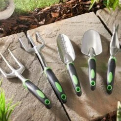 These tools will last you a long time, being made of heavy duty die-cast aluminium to avoid rusting, and also featuring soft, comfortable handles made from rubber. These handles are also non-slip, meaning your grip on them will be secure even while wearing gloves. The handles also feature a small hole at the end, designed to allow the tools to be hung on hooks with ease – perfect for storage on shed racks!