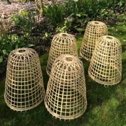 These attractive bamboo cloches are tough, versatile and look great in your garden. Pop them over plants to help during cold winds, or line them with fleece or straw to protect plants in frosty conditions. Great for deterring birds, rabbits and other garden pests – or just as a decorative feature to make your garden pop! These cloches are 0.5m high x 0.4m diameter and are available in packs of 3 and 5