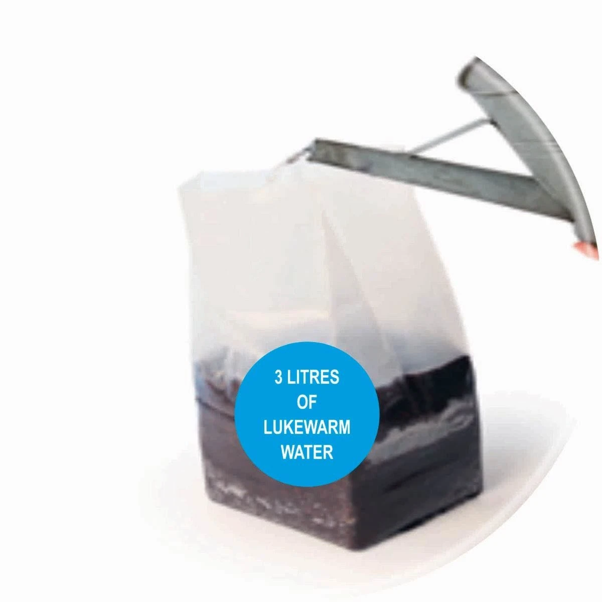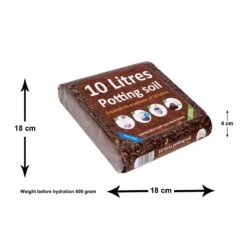 All purpose, growerÂ’s grade, organic potting soil, enriched with nutrients. Ideal for both in-door and out-door use. Convenient small pack that is lightweight and easy to carry. Avoid carrying around large, heavy, back breaking bags of compost. No more split bags and trails of soil throughout the house or in the back of the car. Simply carry this small, lightweight Pack into your garden, open and pour water into the clear bag. The compressed block at the bottom of the pack will expand into 10 litres of ready to use potting soil. ItÂ’s easy and convenient without the mess or backache. The pack takes up minimal storage space which is ideal for small households. The soil has good water intake and holding capacity. The soil is enriched with micro-nutrients to boost plant health and development. Npk 20.20.20 fertilizer blend which is widely used by growers and professional gardeners.