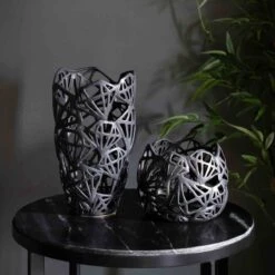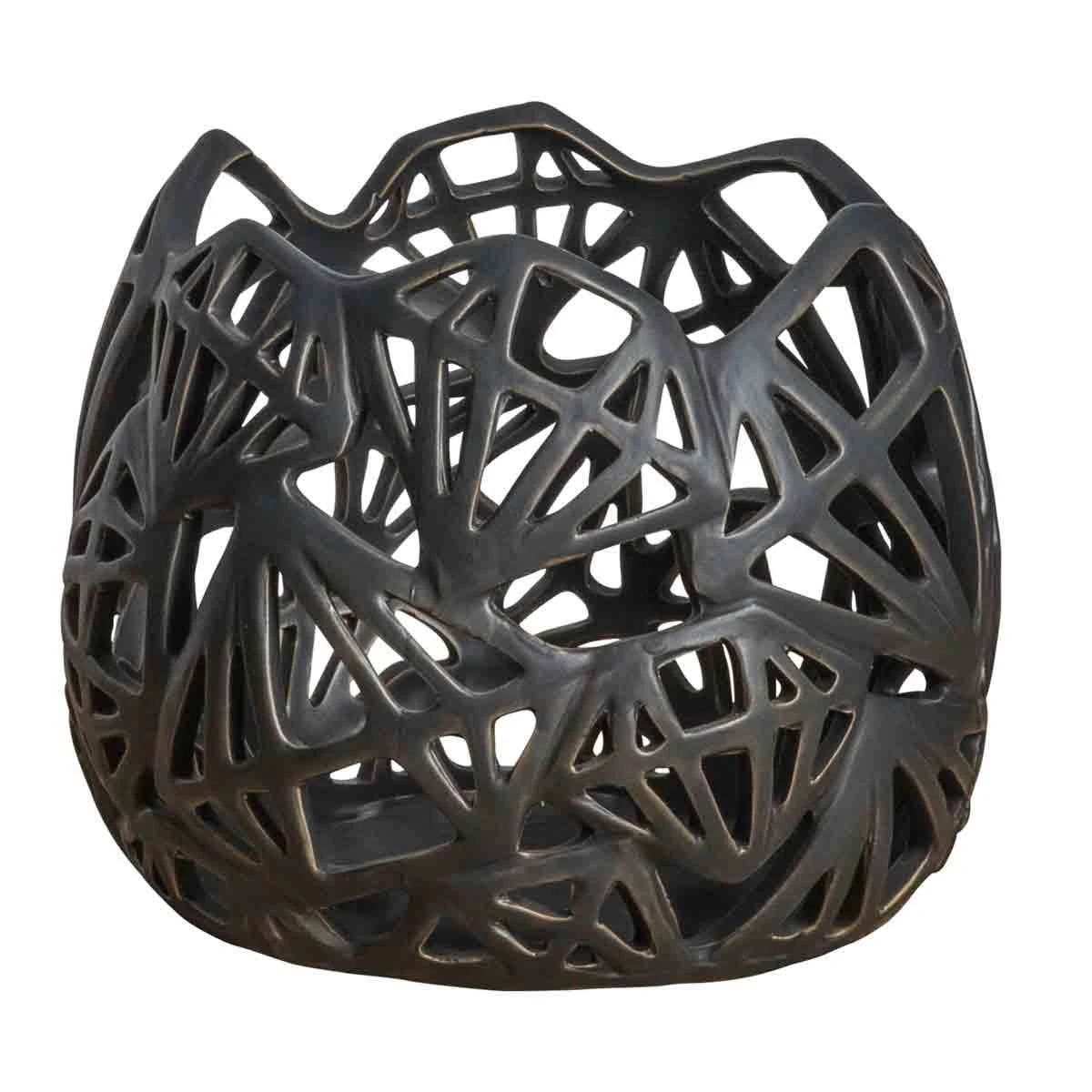 The unusual Greenford Pot makes an interesting and eye-catching decorative piece, with its geometric cut-out design and black glaze.