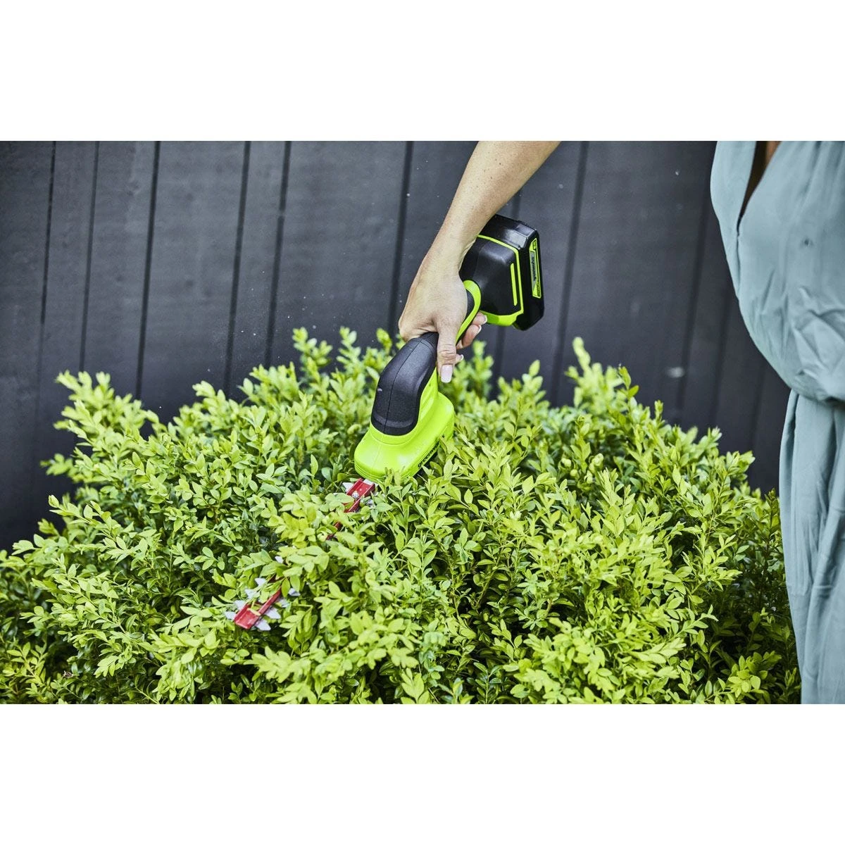 The Greenworks G24SHT cordless grass and shrub shear is ideal for small jobs around the garden thanks to a lightweight and compact design. Power comes from an advanced 24V battery, which is interchangeable with all 24V tools.