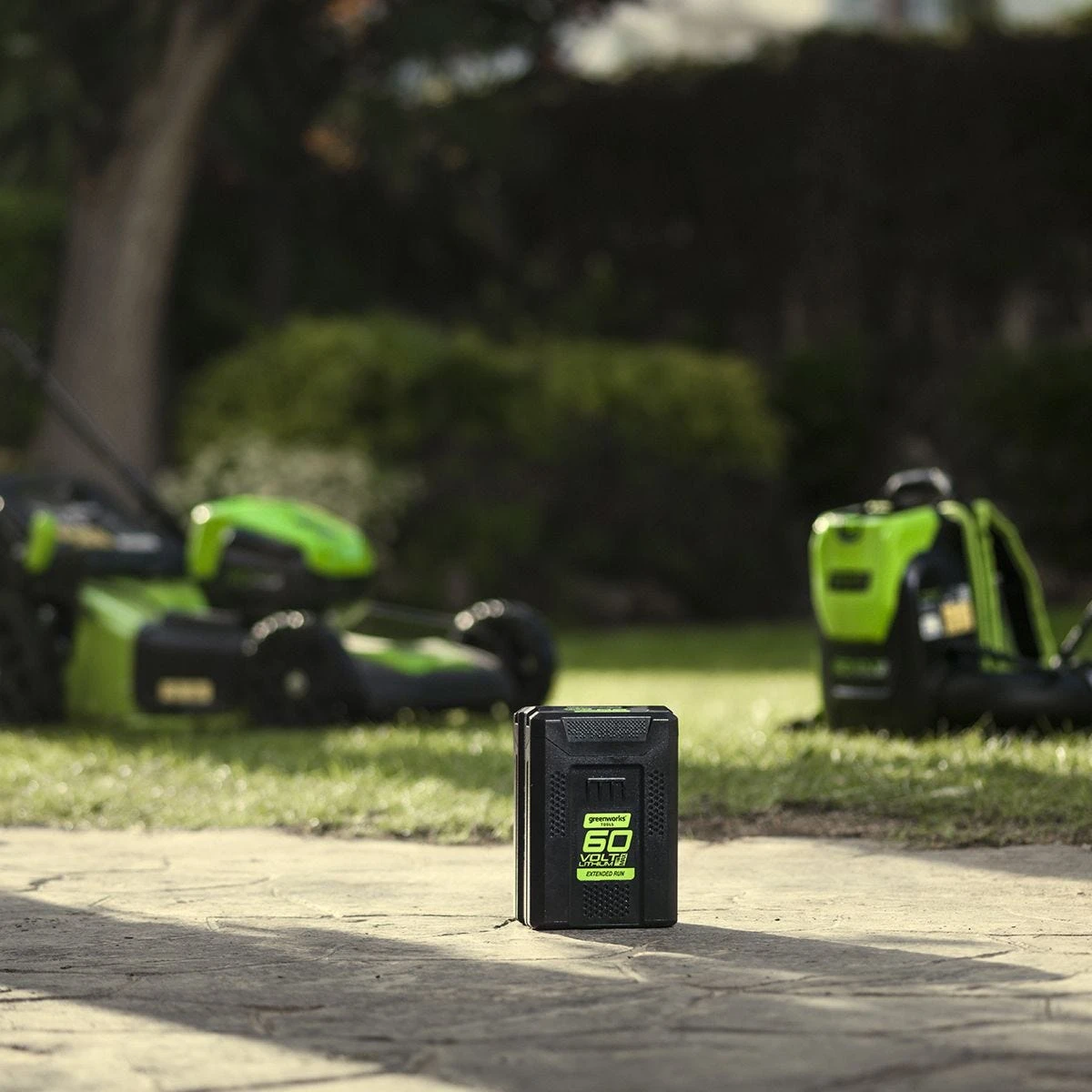 Keep your Greenworks cordless power tools running with this 60v 4Ah Lihtium-ion rechargeable battery.