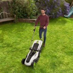 The intelligent blade in this cordless lawnmower runs at 2800rpm until it senses extra power is required and it then rotates faster to 3500rpm making sure that you get the power when you need it.
