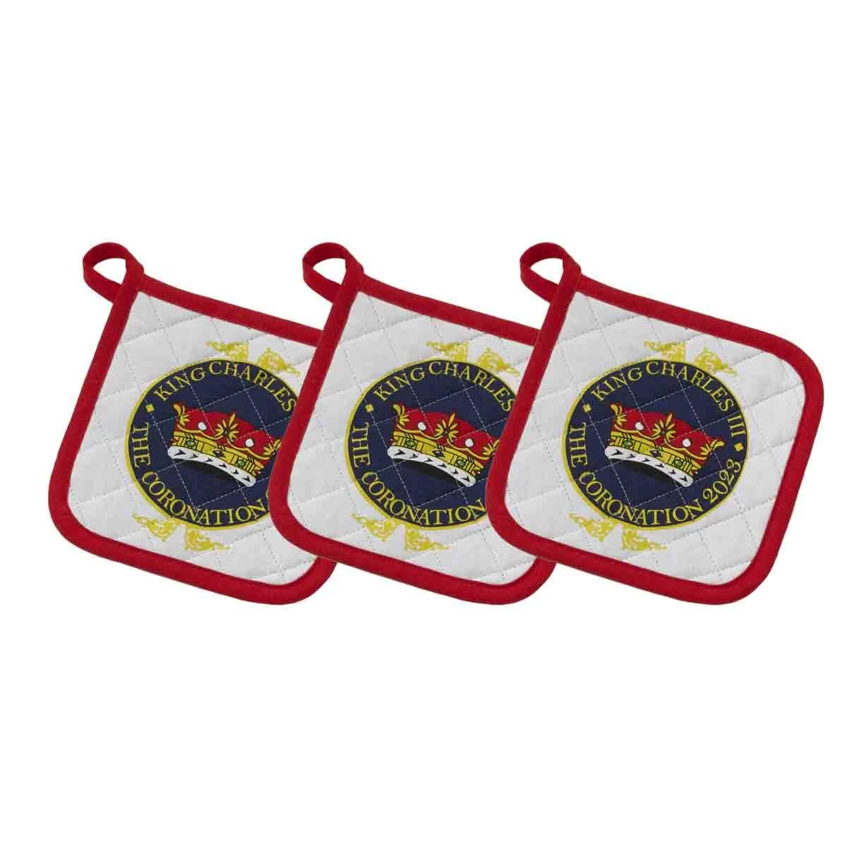 Cotton Pot Holder x3 – The Coronation of King Charles III and The Queen Consort, perfect for the 6th May 2023, Gift, Souvenir, Keepsake, Memorabilia